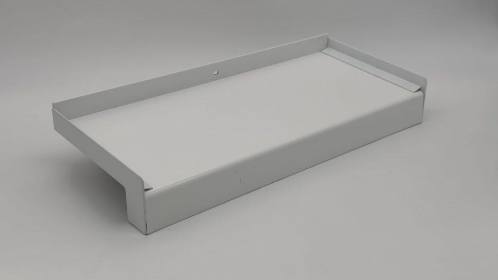 - Außenfensterbänke werden aus stranggepresstem Aluminium hergestellt und sorgen für Stabilität. Unsere Fensterbänke werden in Lagerlängen von ca. 6000 mm mit einer Langlochstanzung am Anschraubsteg 4,2mm x 7 mm im Abstand von 300 mm hergestellt. Die werkseitige aufgeklebte und qualitativ hochwertige Folie schützt die veredelte Oberfläche während des Transports. Auch gekantete Fensterbänke in Überbreite von 420 mm – 480 mm Ausladung führen wir auf Lager.